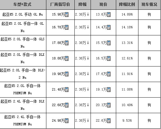 起亚K5现车较充足 可优惠2.38万元