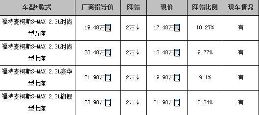 编辑建议:S-MAX作为福特旗下在中国唯一一款国产MPV车型,无论在空间还是售价方面都算是具有优势,目前该车可享受2万元现金优惠,对该车有购买意向的朋友不妨抓住时机,适时选择购进。