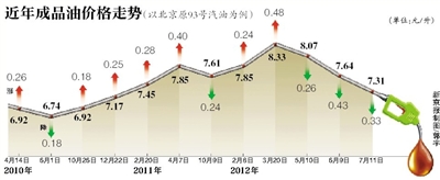 发改委有关负责人表示,此次油价下调严格按照定价机制执行。受国际经济形势影响,国际市场原油价格继续保持低迷,截至7月9日,国内油价挂钩的三地原油变化率下跌超过4%,达到国内成品油价格调整的边界条件,据此国家决定及时下调国内成品油价格。