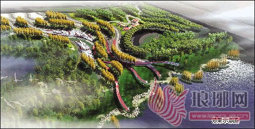 其中一期工程是以园林景观为主题的开放式休闲公园,规划建设儿童娱乐广场、亲水栈道等娱乐休闲设施。园内绿化有名贵苗木紫薇、垂丝海棠、黑松、玉兰达20多种,并以组团形式栽植。正在建设中的天桥将延伸到河中200米,让广大游客充分体验亲水效果。儿童娱乐园与汽车电影院将免费开放,尤其是汽车电影院,借助欧美兴起的时尚、高雅、生态、亲水、个性等新理念,在车内观赏车外大屏幕电影,将深受有车一族和青年人的喜爱。