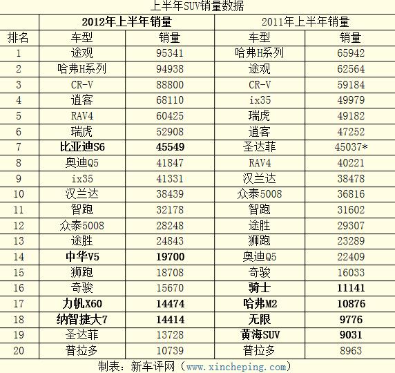2012上半年SUV和MPV市场销量分析