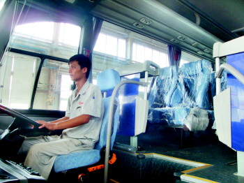 “电动旅游大巴采用了无级变速系统,只有油门和刹车两个踏板,没有离合器,而且只有前进和倒车两个档位。对于开惯了普通客车的驾驶员来说,开始难免会有点不习惯。“沂星公司副总经理刘延爽说。