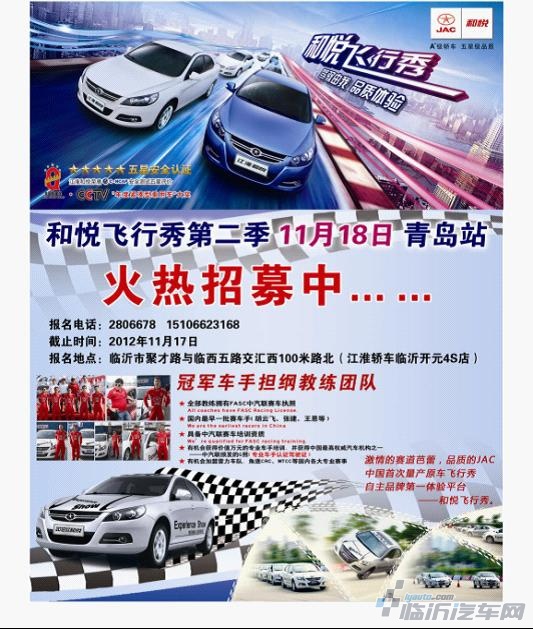 11月18日,这场充满激情的运动表演将抵达青岛双埠工业园,青岛地区江淮轿车客户以及喜爱江淮品牌的消费者都可以报名参与。前往参与活动的客户还能参与现场的试驾挑战大礼。一个让肾上腺喷张,挑逗运动神经和视觉神经的和悦飞行秀活动,就在这个烂漫的金秋!量产车极限运动,开启国内先河 活动期间,专业车手将驾驶和悦向消费者展示“雁行阵型”、“菱形阵型”、“交叉蛇形”、“行进间多车调头180°”以及“瞬间360°转向”等高难度项目。消费者也可以亲自试驾。 “飞行秀”是汽车行业展示产品的一种常见方式。除了驾驶者本身娴熟的技巧和高度的团队默契外,“飞行秀”对车辆本身的动力、品质、安全等各个方面也有着堪称“苛刻”的要求,因此,对参加“飞行秀”的车辆进行针对性的改装也成为了行业惯例。在这样的情况下,江淮乘用车开国内之先河,以量产原车上演“飞行秀”就显得尤为难能可贵,也因此成为了媒体和普通消费者关注的焦点。
