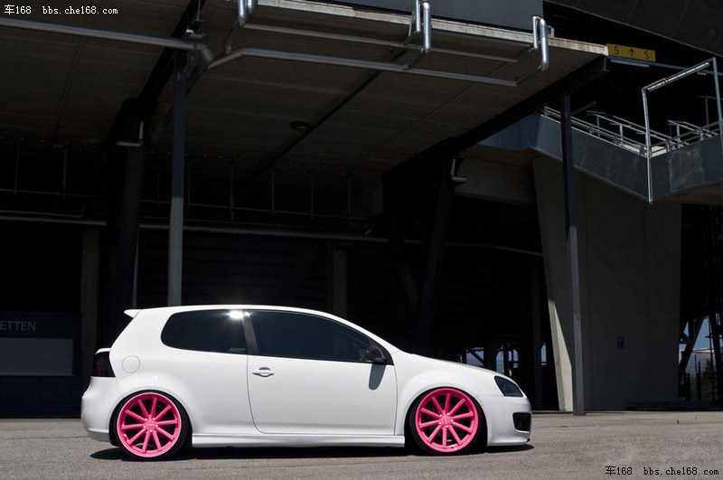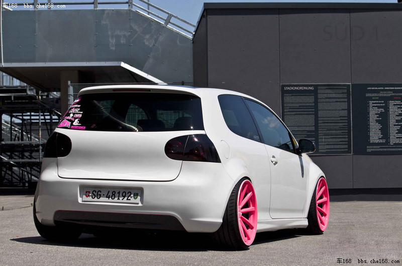 极致风骚 粉红轮毂涂装的高尔夫GTI