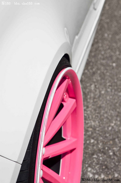 粉色和白色的外表有点草莓冰激淋的感觉,LOW低的车身和超大尺寸外抛的轮毂营造出HELLAFLUSH风格!
