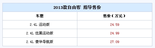 10月31日,2013款Jeep自由客正式上市,新车款增加了炫黑运动版。全车系售价区间为24.59-27.09万元。