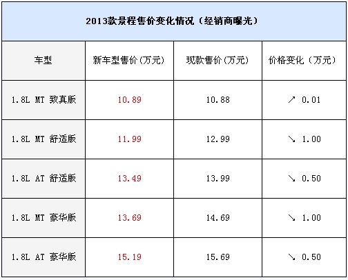 2013款景程售价变化情况(经销商曝光)