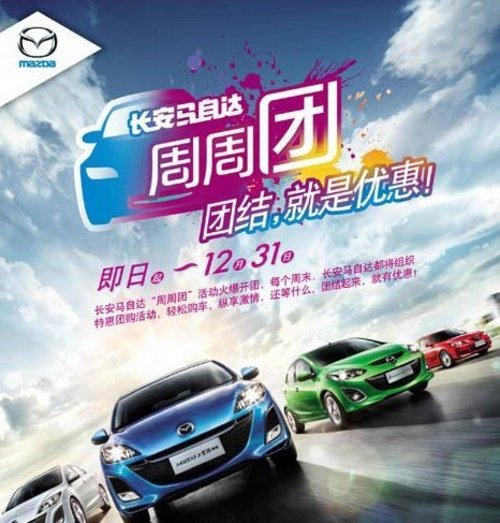 团购诱惑难挡,团购就是力量!长安马自达“周周团”促销活动的诚意显而易见,随着这一活动的常态化开展,势必将进一步强化长安马自达团购消费群体的份额,取得不俗的效果。