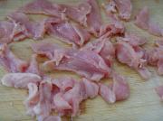 1. 将瘦肉切成大薄片,放淀粉、料酒少许、盐少许腌制。