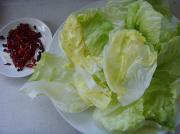4. 生菜洗净,用手撕成大片。