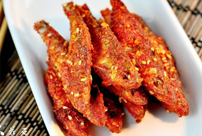 材料:小河鱼 料酒 盐 淀粉 辣椒油 花椒面 熟芝麻