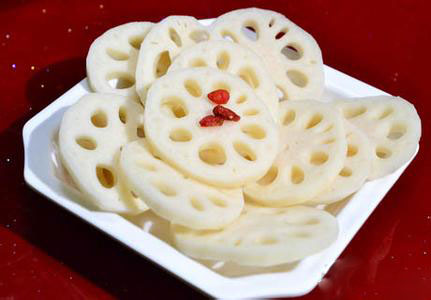 2、根茎类  切好的藕片、土豆或山药,一转眼就变成褐色,这是其丰富的酚氧化酶在作怪。把它们用沸水烫10秒钟就能解决,这样既“杀死”了酶,也不影响口感。