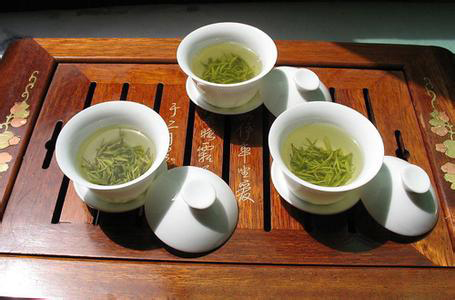 不论是主人还是客人,都不应大口吞咽茶水,或喝得咕咚咕咚直响。应当慢慢地一小口一小口地仔细品尝。遇到漂浮在水面上的茶叶,可用茶杯盖拂去,或轻轻吹开。切不可以手从杯里捞出来扔在地上,也不要吃茶叶。