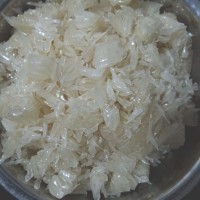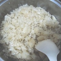 8. 待冰糖溶化后放入刮好的柚子皮。