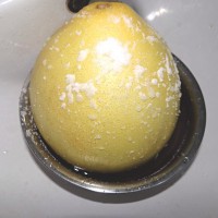 2. 把买来的柚子用食盐搓洗一下外皮,因为最外面黄色的表皮是需要用来做柚子茶的,因此要洗干净。