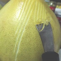 3. 这个叫柠檬刮刀,就是用来处理柚子皮的,稍后的图片中可以见识到它的作用,刮出的柚子皮又薄又细,非常好用。