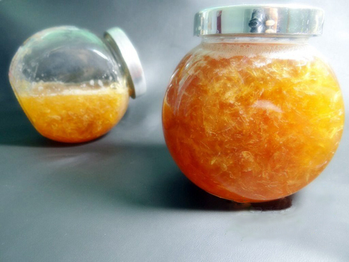12. 搅拌均匀后装瓶即可,刚做好的柚子茶会有小气泡,静置2~3天后就会消失,且味道会更佳。这个柚子茶很浓稠哦,都可以做果酱来吃~小伙伴们学会了吗?期待你们的作品哦~