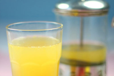 辅料:龙井茶适量 调料:蜂蜜10克 百香果绿茶的做法 1.取适量龙井茶叶放入茶壶中。 2.用开水沏茶。放到一旁备用。 3.百香果洗净。 4.用到从中间切开。 5.将果肉挖出放入搅拌杯。 6.搅拌杯放料理机上搅打一下。 7.搅打成百香果泥。 8.将搅打好的百香果泥倒入沏好的绿茶中。 9.放入适量蜂蜜交搅拌均匀。 10.盖上可以滤茶叶的茶壶盖,喝前倒入杯中即可。