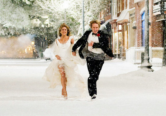 电影《马利和我(Marley &Me)》中,品牌Carolina Boulton 的定制婚纱陪着安妮斯顿在雪中飞奔。