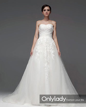 如果上身比较丰满,最好选择上身设计简单而又能展现胸线的婚纱,下摆选择公主式蓬裙;如果下身比较丰满,不要选择以皱折为设计重点的婚纱,以A字型裙摆为佳。蛋糕裙、层叠的裙摆则是丰满身材的大忌。