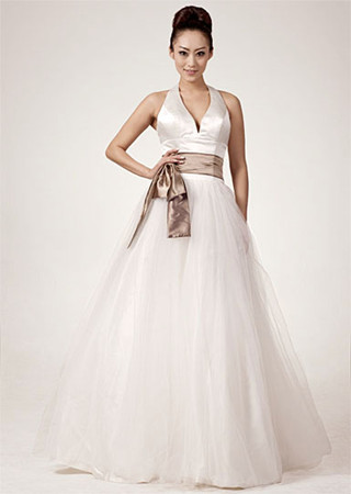 可爱的小新娘可以选择短款婚纱,有别于传统长婚纱的呆板,短款婚纱更显活泼俏丽。如果你是活泼开朗的娇小MM,短款婚纱将是你最佳的选择。