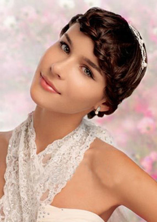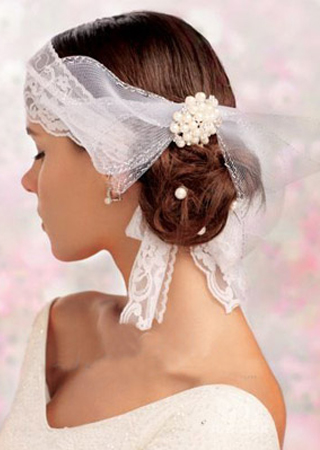 蕾丝花边的精巧细腻总能将女性温柔气息展现无遗,故而蕾丝一直是最具人气的新娘装饰物,用蕾丝花边装饰后的发型总是别有一番魅力风情。
