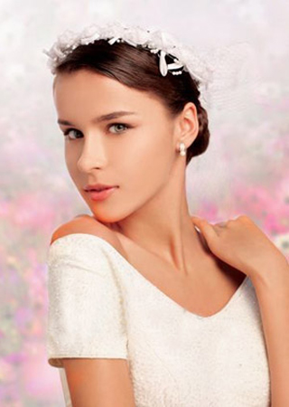 精致纤柔的外观让缎面花冠拥有了清丽优雅的质感,用这类头饰装扮的新娘,周身都透着一股秀丽柔美的纯净气质。