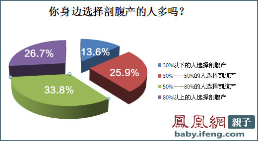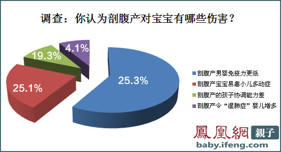 导语:谈到选择分娩方式,现在大部分准妈妈因为对自然分娩十分恐惧,所以最终选择剖腹产。而现在有很多专家谈到剖腹产对宝宝的危害较大,所以建议准妈妈还是尽量选择自然分娩。凤凰网亲子频道针对剖腹产以及剖腹产对宝宝的危害做了三个问题调查。具体调查结果如下图: