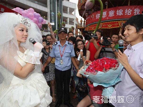 南京女子街头主动向男友求婚