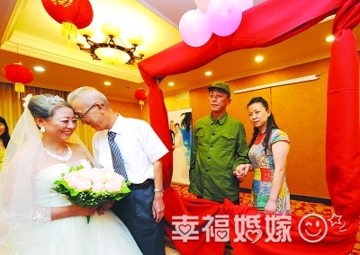 8月16日下午6点多钟,一对年届7旬的银发夫妇在南京举办了一场别开生面的“穿越婚礼”。伴随欢快的音乐《九九艳阳天》,这对老年夫妇牵手走上红地毯,而婚礼主持人却宣布:“女士们先生们,‘24岁’贾学良与‘20岁’王士芳的婚礼大典正式开始!”与此同时,舞台上依次出现了一组由两位模特演绎的恋人:男子身穿军装,女子身着旧时衣服。这是怎么回事呢?原来老两口50年前没有办婚礼,这次是第一次办,但岁月逝去容颜已改,为“再现”当年相识相恋场景,他们请来儿女登台,在众多亲朋好友面前,玩一把50年风雨“穿越”。