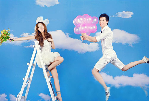 浮游摄影为什么广受年轻人的追捧,就是由于它所网传递的摆脱束缚、飘起来的时尚生活新信念,符合时下年轻族群追求自由、个性的心理需求。那么,牵手最爱的她,一起用力跳跃吧!突破俗世束缚,勇敢追求真爱,等到白发苍苍的时候,翻开相册,回味当年的青春无穷、真爱无敌……短款蓬蓬裙婚纱、牛仔裤、帆布鞋、BOBO头都是年轻的符号,布满活力的学院风浮游婚纱照少不了这些。