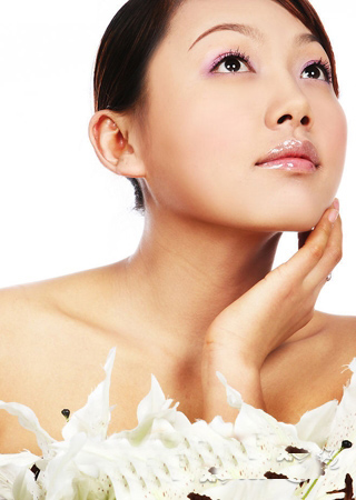 粉紫色的眼影:具有亲和度,而微微晕开的紫色烟熏是妆容的重点。 在上眼皮大面积地涂抹淡粉色眼影,再以粉紫色的眼影着重在上下眼睑处。配合干净如瓷般的洁白肌肤,能营造出神秘、纯净、浪漫的美丽气质。眼线的描画会令眼睛更显大而有神,体现出紫色妆容特有的可爱感觉。