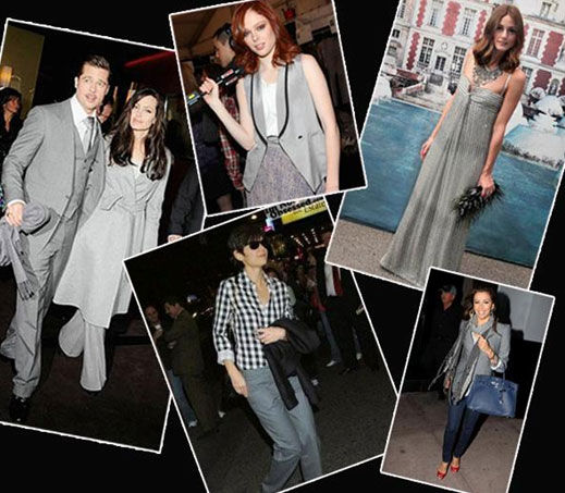 coco rocha制服式的灰色马夹很有职业范儿,看起来有种女强人的专业性。凯蒂-赫尔姆斯,黑白格子衬衫搭配灰色西裤,性感时尚。衫袖口挽出白边,显得更聪明干练。Angelina Jolie选择了优雅高贵的灰,却与Pitt有着亦明亦暗的配合。Olivia Palermo一袭Valentino银灰色褶皱礼服裙,略带金属光彩的压摺礼服将Olivia装扮的更加具有奢华的味道。
