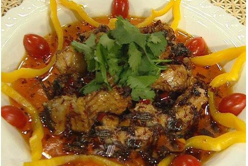 2、坐锅点火倒油,将鱼块放入煎熟后取出,倒入调好的酱翻炒,炒香后放入鱼,炒匀装盘,锅中留少许汁,勾芡浇在鱼上,撒香菜即可。
