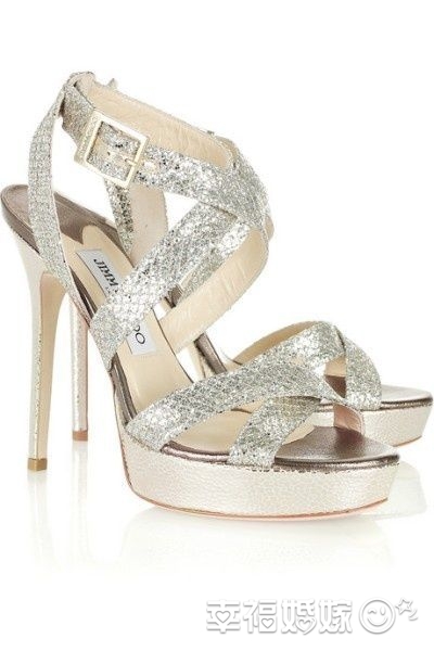 银色高跟鞋,可搭配黑色的小礼服,鞋面上闪光效果是亮点。