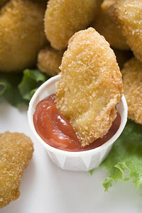 当你将食物浸到面糊中然后进行深炸,就是把食物变成了一种对于消化道来说有点硬的是食物。油炸的食物难免是油腻并且高脂肪的,两者都对腹部有害。假如肠道有炎症的话,油腻的食物就会引起恶心或者腹泻的症状。如果你想吃鸡块吃得健康,可以自己用面包糠或者采取焙烤的方法。这种方法同样适用于一些传统的油腻食物,如薯条。