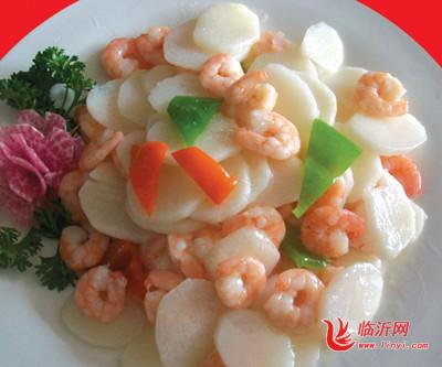 1.鲜虾仁加料酒、盐、味精、蛋清和水淀粉上浆,放温植物油中划散取出;山药去皮切象眼块,用沸水焯出。