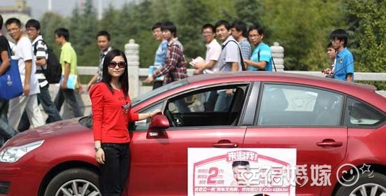 “征婚车”已经开了五天,师倩记得,10月5日,雨过天晴,她便开着贴满征婚启事的爱车出去溜达。她说一出门,就有很多人追上来搭讪,要电话,加QQ求交往。