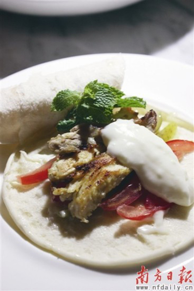 味道不甜不腻,配以烤制好的肉类和蔬菜,加上沙拉等调味,与常见的三明治有几分异曲同工之处。