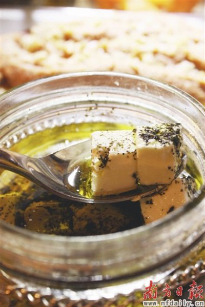 油浸秋葵、油浸青豆、油浸番茄欧洲节瓜等,从菜式上不难看出,黎巴嫩人喜欢用橄榄油来烹调食物。据Ali Hadla介绍说,受法国的影响,黎巴嫩菜做法精致,而且注重健康,所有的菜肴基本都用橄榄油来烹煮,据说在黎巴嫩当地,有人甚至将橄榄油当做水一样来喝。不仅如此,橄榄油更是治疗疼痛的万能药,Ali Hadla打趣的说,如果小孩子肚子不舒服大人们会拿纯净的橄榄油给他涂上,是当地沿袭至今的生活智慧。