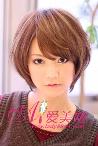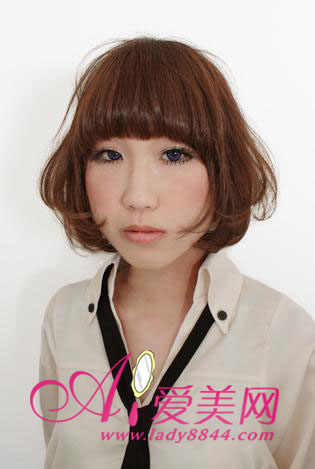波波头加一点厚重的效果把包包脸藏得更深,下部分头发尽量往脸贴,衬托出含羞答答的淑女气质。