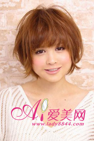 染发后形成的自然毛躁感用定型产品加以造型更显时尚,留下修饰颧骨的碎发和齐刘海,露出脸型也不失礼。