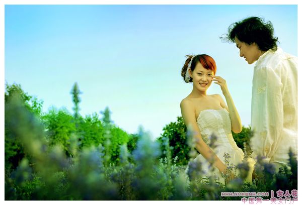 8、 微笑是最上镜的表情,但婚纱照 里最好别大笑,以免双眼周的细纹明显,失了仪态。