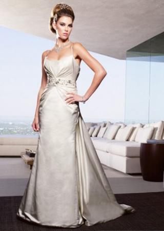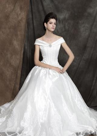 在一次婚纱款式的问卷调查中,细肩带的款式被大部分男士认为是最希望伴侣选择的款式,可见在男士的心目中,细肩带是很性感的。这款婚纱绝对是经典款式。