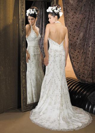 宫廷风格刺绣,性感的深V挂脖款式。