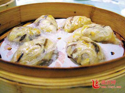 6.笼内铺上笼布,放入饺生坯,置旺火锅上蒸约3分钟,揭开盖,喷洒上些凉水,再加盖蒸约2分钟,出笼装盘即可。