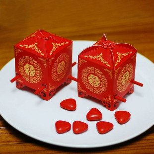 大姑娘上花轿是一生的一件大事,时下不少女孩还遗憾明媒正娶的自己没能坐花轿风光一回,这份心愿不妨通过分发花轿喜糖来完成。大红花轿做得像模像样,只不过是迷你的,吉祥喜庆又有趣。