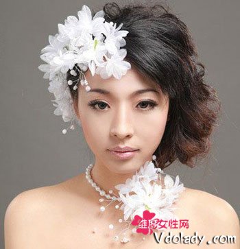 纯白色碎花朵发饰点缀在新娘盘发上,唯美浪漫。