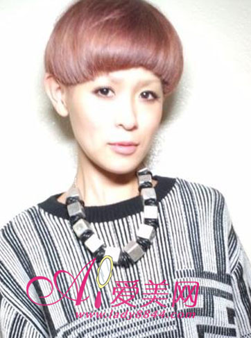 这款超短发最适合脸型尖长的女生,厚重呈圆弧状的短发削弱过尖的头型,缩小脸型只露出尖尖小脸。个性的发型设计,采用了沙宣发型的外扩弧度设计,配上有点金属feel的铜色染发,成为个性时尚女王。