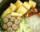 原料:新鲜羊肉馅500克,白菜1/4颗,粉丝1把,豆腐1块,香菇6只。